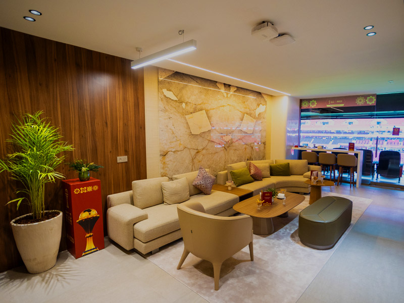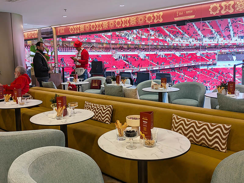 - Vibrant lounge offering festive, shared hospitality in the stadium
