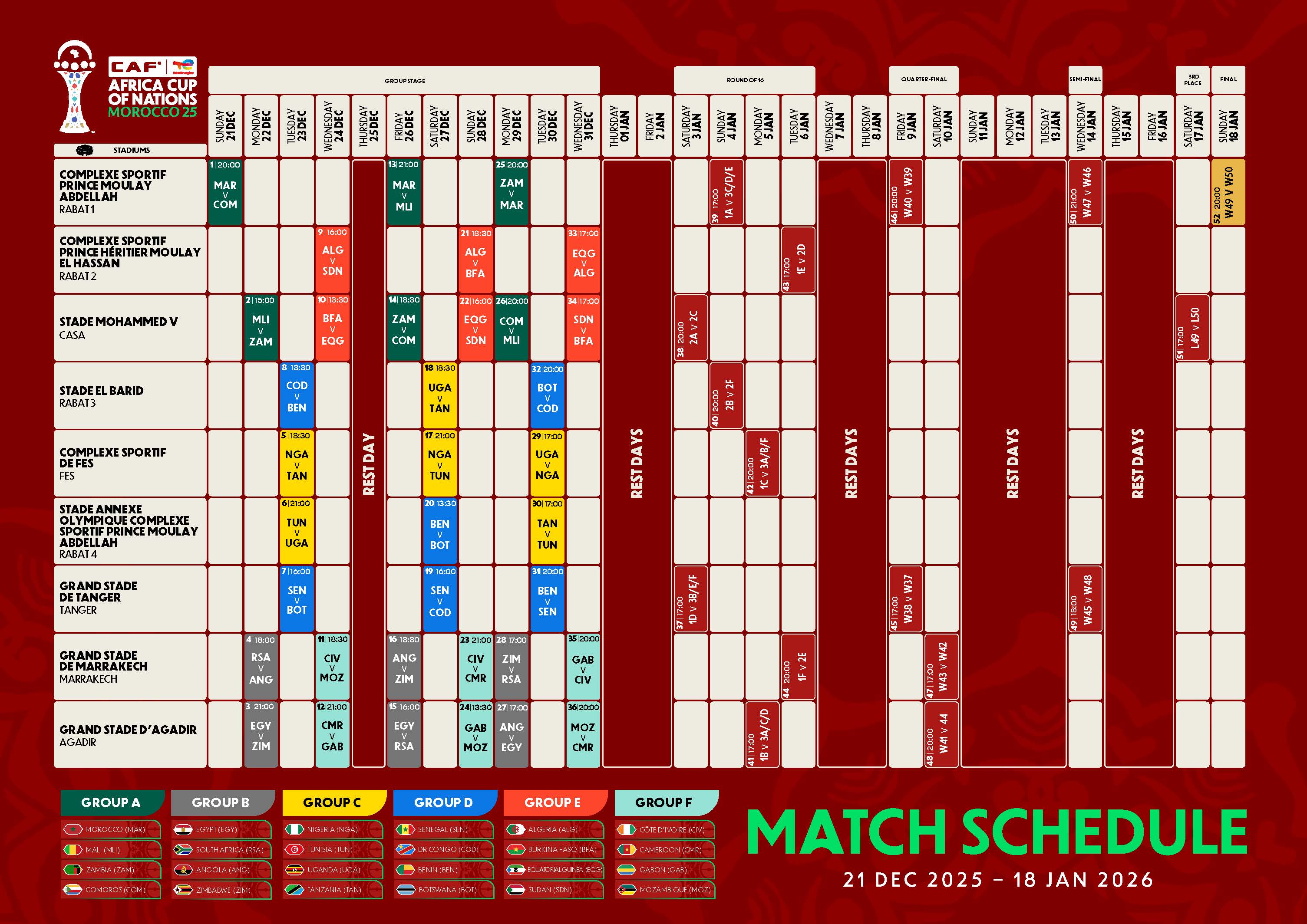 AFCON Match Schedule